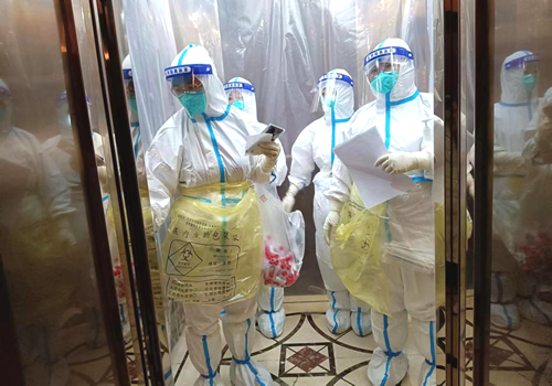 面對(duì)始料未及的新冠疫情再次來(lái)襲,職工醫(yī)院全體女醫(yī)護(hù)人員不再慌張,而是緊張有序的進(jìn)行著每一項(xiàng)工作。她們細(xì)心的為承接的LV隔離酒店隔離區(qū)進(jìn)行嚴(yán)密消殺,每日從專(zhuān)用步行梯人工運(yùn)送垃圾,為隔離人員按時(shí)進(jìn)行核酸檢測(cè)、送水送飯。進(jìn)入隔離區(qū)最快也要持續(xù)4、5個(gè)小時(shí),一套流程下來(lái)整個(gè)防護(hù)服都濕透了,這些可愛(ài)的天使們還打趣道“又洗了個(gè)天然沐浴”!